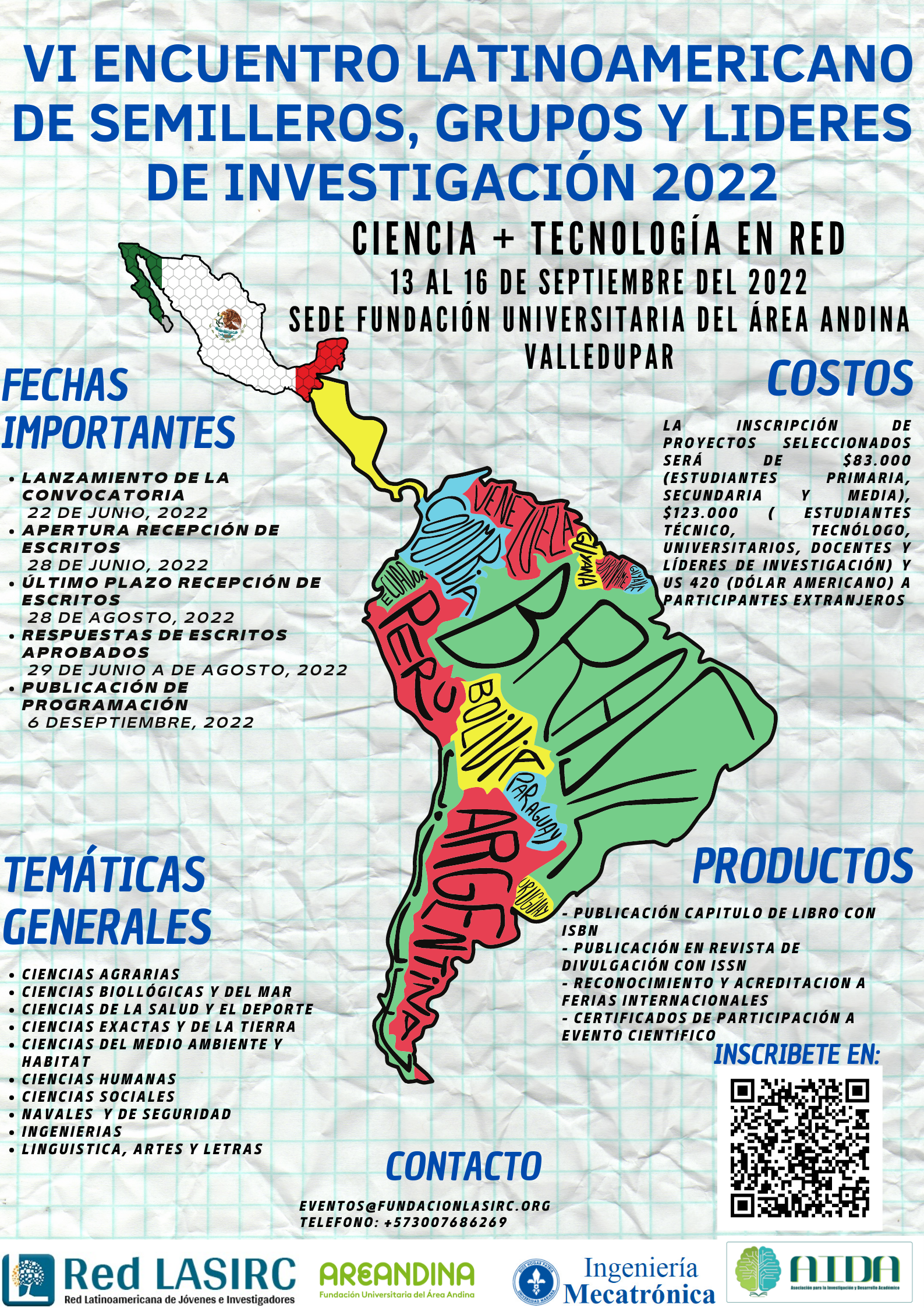 Evento realizado desde el 13 al 16 de septiembre del 2022, Este evento se realizó de manera presencial. En este evento participaron, a nivel internacional, proyectos de investigación en curso o finalizado. Evento presentado en conjunto con la sede fundación universitaria del área Andina y Red Lasirc en Valledupar, Colombia.